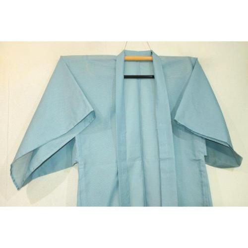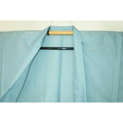 弐9777RM 化繊平絽 男羽織 裄70丈95К水浅葱色の無地 琉球筒袖十徳仕立て 新品仕立て上がり