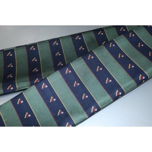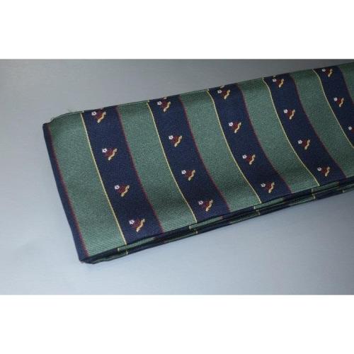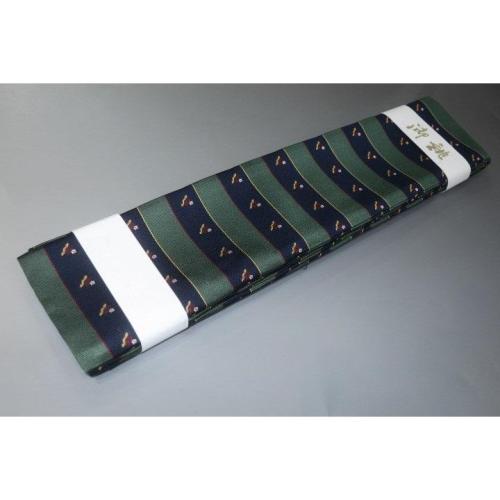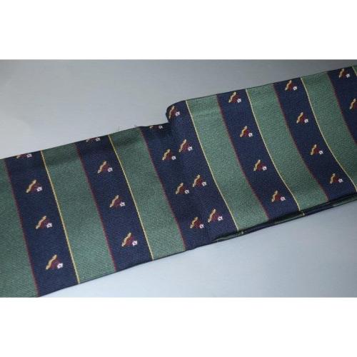 弐10671RM 男角帯 本絹西陣織平織 К紺に深緑色とエンブレム 全通洒落帯 ネクタイ生地を使いま
