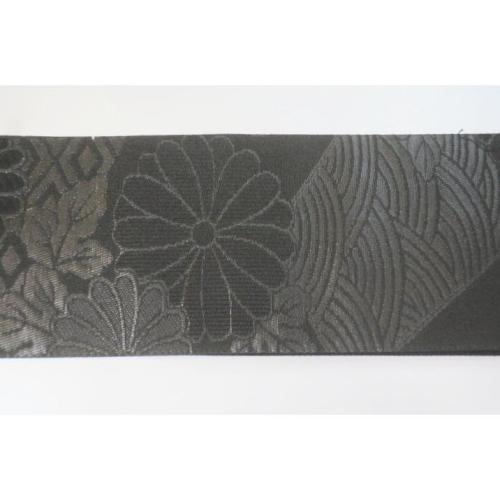 弐11393RM 男角帯 本絹西陣織К黒繻子 葉付き蔓菊に青海波 新品 上仕立て 10cm幅 別誂え