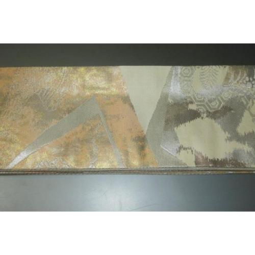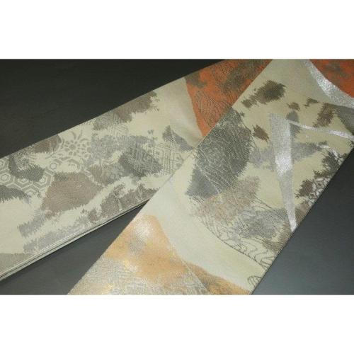 弐11437RM 男角帯 本絹西陣織練貫К燻し銀地桜箔引き 裂取り古典文様 新品 本絹銀糸使用 別誂