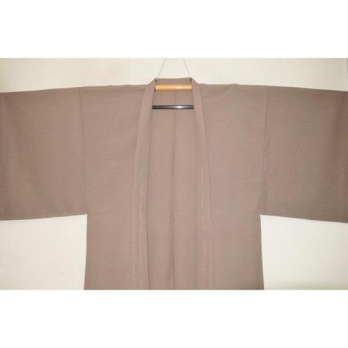 弐11478RM シルク化繊丹後縮緬調 男羽織単衣 裄73丈95К白橡(しろつるばみ)灰茶色の無地