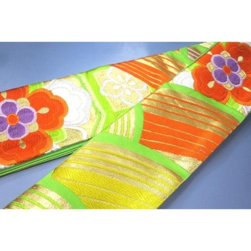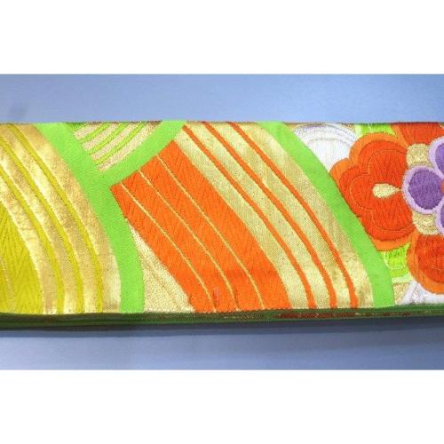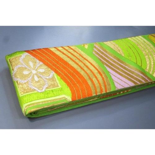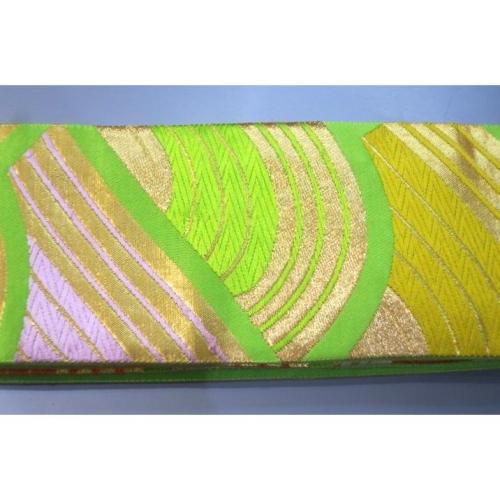 弐11489RM 男角帯 本絹西陣織 К黄緑地金襴縫い取り青海波に八重宝相華文様 新品 帯コレクター