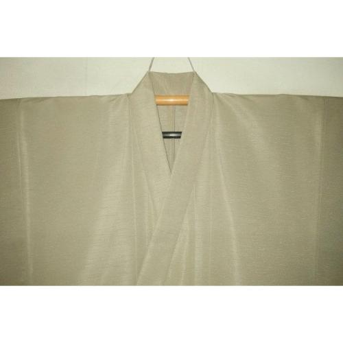 拾11521RM シルク化繊お召調 男着物単衣 裄72丈141К芭蕉色の無地 新品 茶人好み 洗える