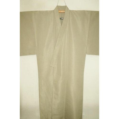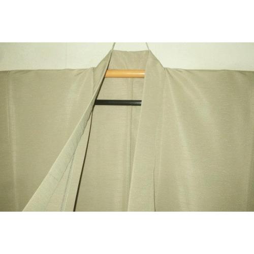 こちらのお品は、シルク化繊お召調の単衣の着物です。ミシン手縫い併用の呉服仕立ての新品です。着物のみです。化繊のお召調で洗えます。むしろ本絹より扱いやすいかもしれません。色味が難しいため現物優先でお願いします。状態は当社で仕立てた新品のサービス出品です。お洒落男子の洗えるいい羽織如何でしょうか。色は芭蕉色の無地。