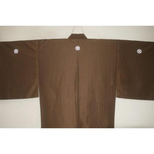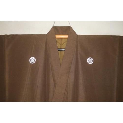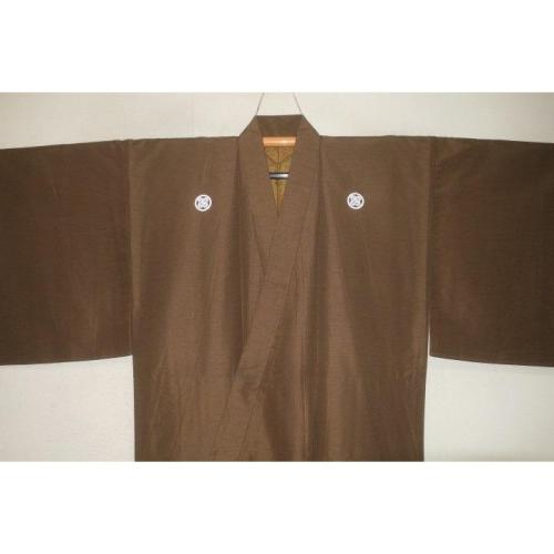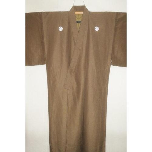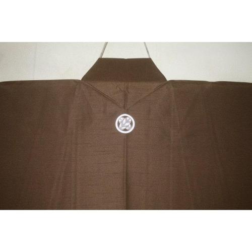 拾11545 シルク化繊丹後縮緬お召調 男着物袷 裄72丈146К金茶色 新品 色紋付 家紋選べます