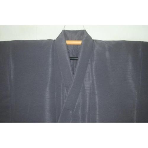 こちらのお品は、シルク化繊お召調の単衣の着物です。ミシン手縫い併用の呉服仕立ての新品です。着物のみです。化繊のお召調で洗えます。むしろ本絹より扱いやすいかもしれません。瑠璃色の無地です。色味が難しいため現物優先でお願いします。状態は当社で仕立てた新品のサービス出品です。お洒落男子の洗えるいい羽織如何でしょうか。色は利休鼠。